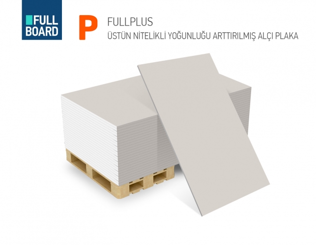Yüksek kaliteli yoğunlaştırılmış plaka FULLPLUS, yüzeyi düzgün bir alçı plakadır. Bölme duvar, asma tavan ve duvar giydirme v.b. uygulamalarda kullanılır. Her iki yüzü, plakaya esneklik ve yüksek dayanım sağlayan gri renkli özel karton ile kaplıdır.